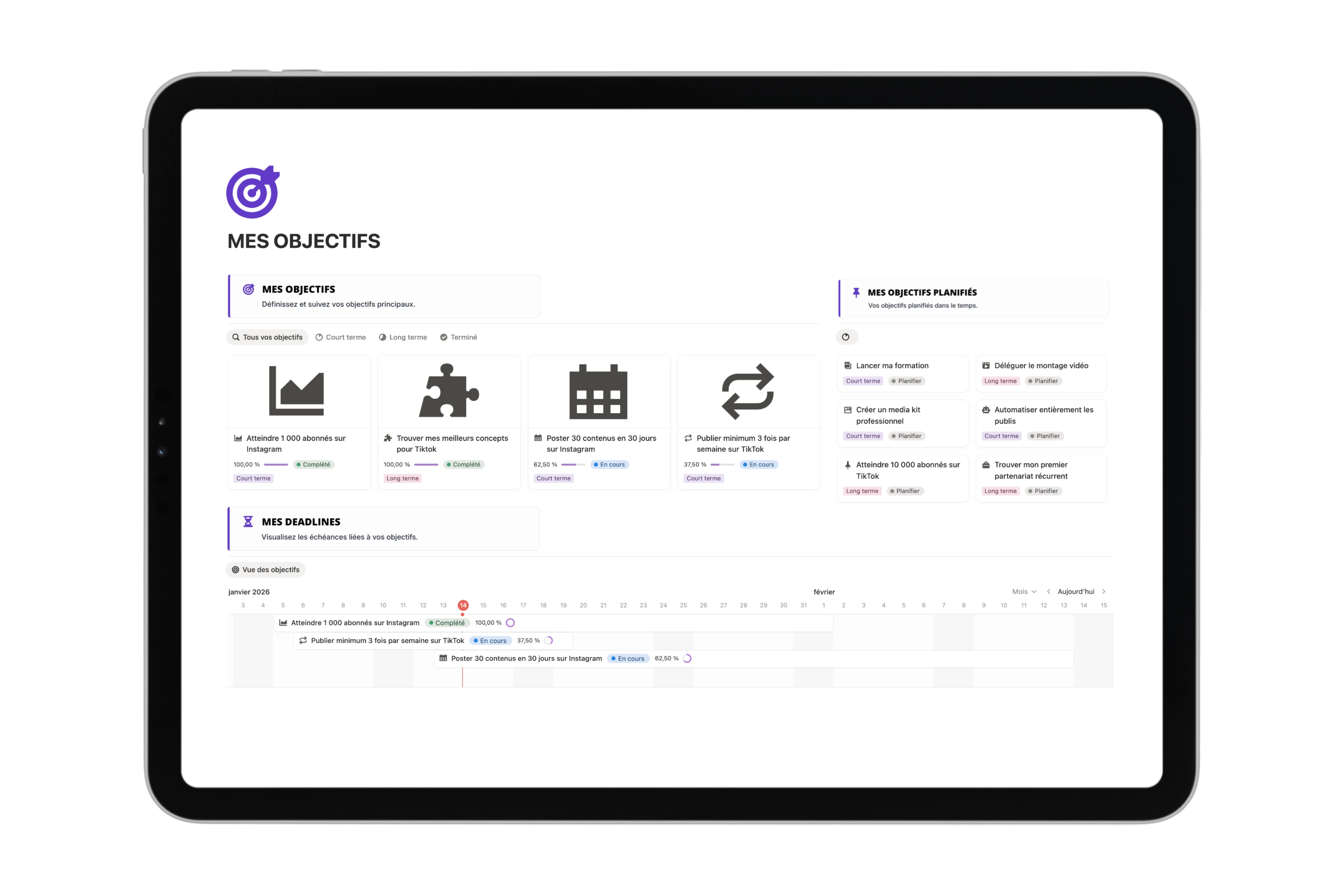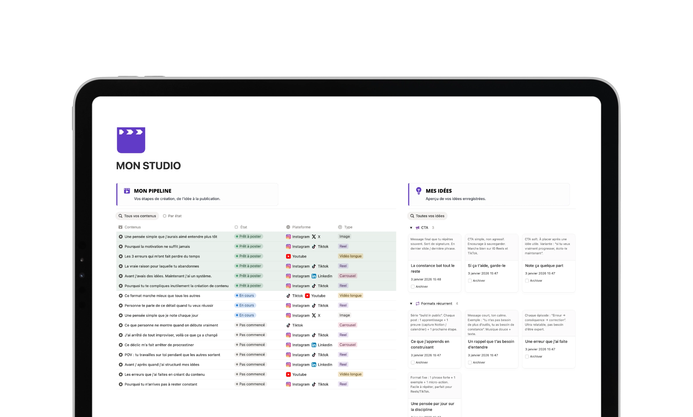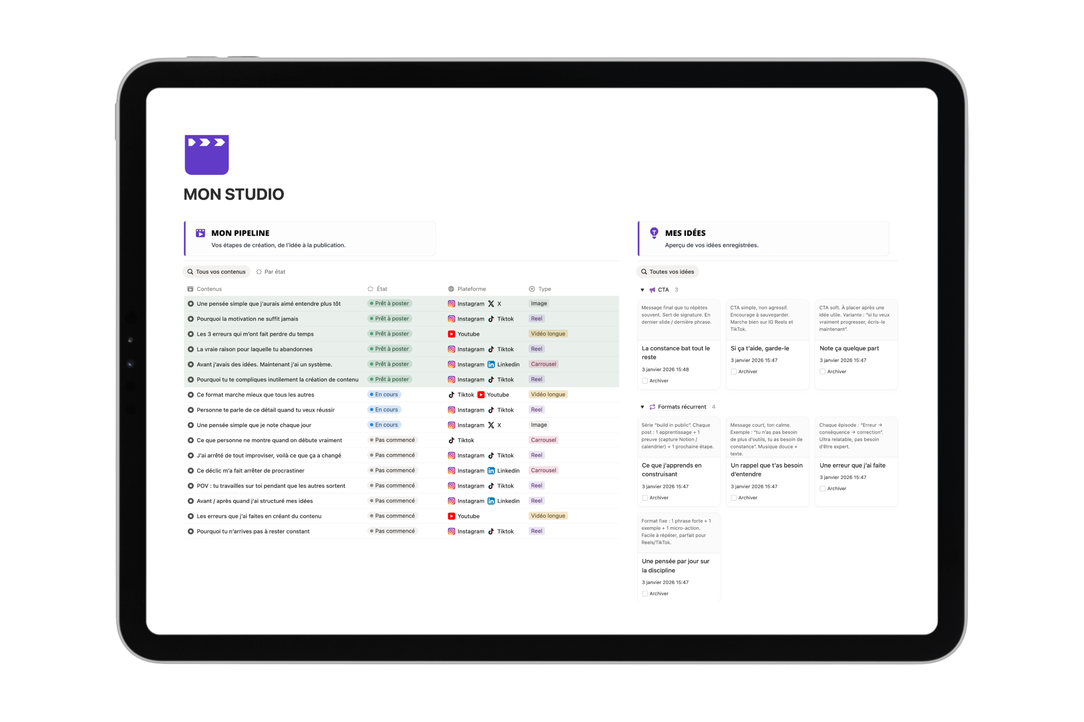 "Un vrai système pour créateurs. J’ai centralisé mes idées, mes contenus et mes performances dans un seul outil."